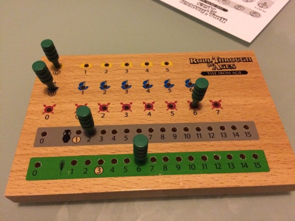 - Roll through the age : the iron age – The Mediterranean Expansion (uniquement valable pour les pledgeurs KS) est sorti en 2014 et est bien une extension du jeu iron age.