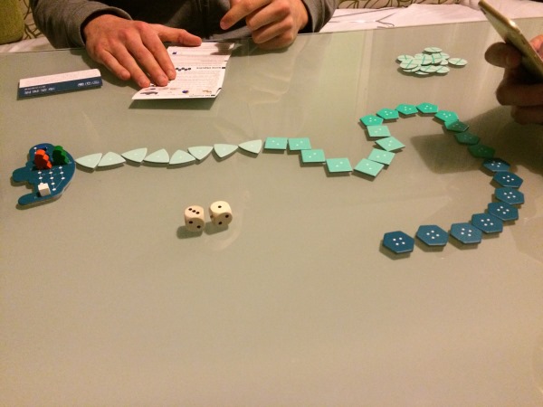 Petit jeu à l’esthétique très sympa et aux règles effectivement assez simples à apprendre… par contre très difficile de remonter quoi que ce soit lors des premières parties, l’ivresse des profondeur, l’appât du gain ?? quoiqu’il en soit des petites parties très sympa et assez rapides pour en refaire plusieurs de suite…