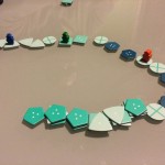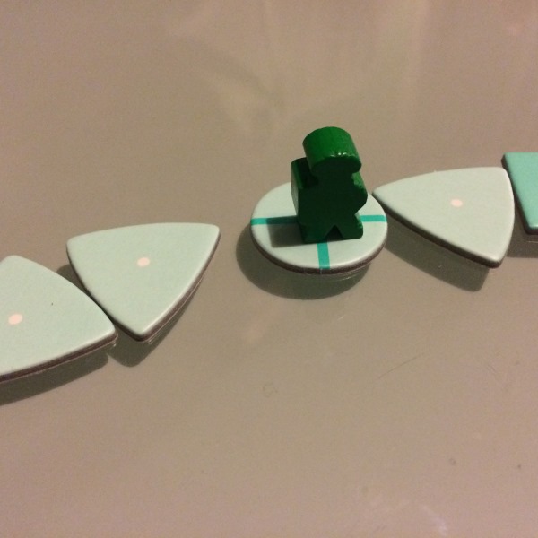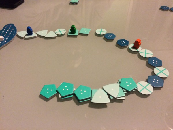Dans deep sea adventure, vous partagez tous 25 points d’air. Tant que personne n’a mis la main sur un trésor, l’air est présent, par contre, à chacun de vos tours, si vous avez des trésors, vous perdez des points d’air. Et croyez moi ça va très vite !!! Si vous ne ramenez pas vos trésors à la surface vous devrez les abandonner au fin fond de l’océan pour pouvoir remonter… (vos trésors abandonnés se retrouvent en bout de piste comme sur l’image ci dessous)