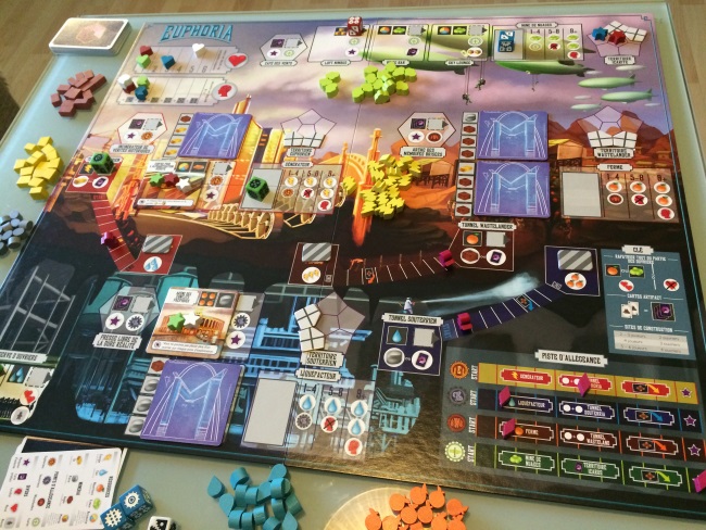 Euphoria m’avait déjà fait de l’oeil lors de sa campagne de financement sur Kickstarter, je me souviens m’être fait violence à cause de l’anglais qui ne faisait pas bon ménage avec mon groupe de joueurs. Mais grâce à Morning Players, le jeu a pu trouver son public français.