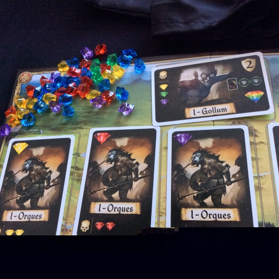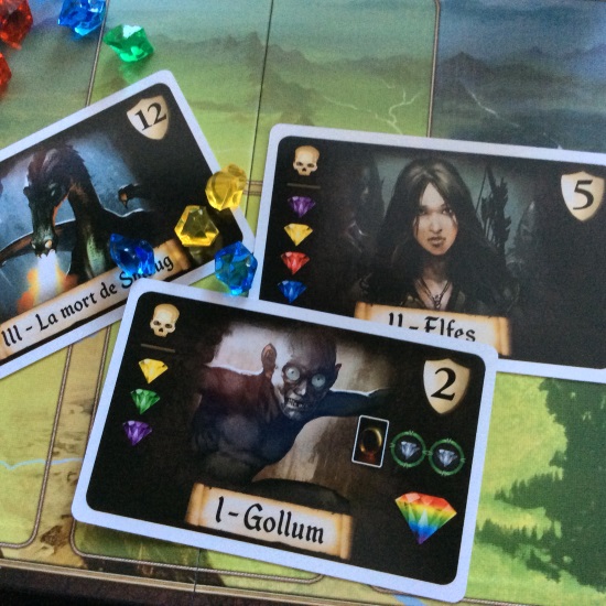 Je suis peut-être passé à côté du jeu, mais mon ressenti est vraiment mitigé sur cet opus. Les illustrations et le matériel sont assez attrayants pour ce petit prix mais le thème est vraiment plaqué. À aucun moment on se sent transporté dans les terres du milieu. Le côté symétrique pour les cartes héros donnent peu de stratégies différentes entre les parties. Le fait de connaître l’ordre d’arrivée des monstres conduit à un déroulement préconçu des parties, presque automatique, ou le vainqueur sera déterminé par celui qui piochera la gemme rare en premier. Ceci peut être éventuellement contrebalancé par les bonus obtenus lors des vagues précédentes…