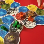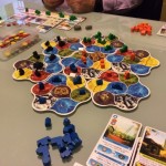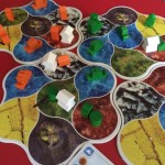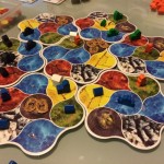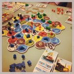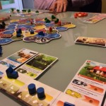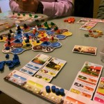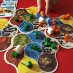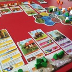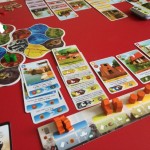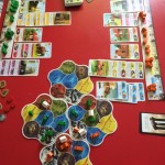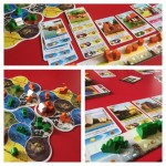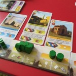J’aime particulièrement la double action : poser une carte sur son plateau/jouer celles posées précédemment et construire son bâtiment sur le plateau principal où les batailles de territoires vont bon train.