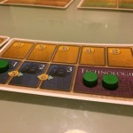 - Plus vous avancez dans la partie, moins vos marqueurs sont disponibles… Car pour les PV et l’or , un marqueur ne peut aller que jusqu’à 5, et de 6 à 10 il faudra un second marqueur, et ainsi de suite… Et oui il faut donc un marqueur par tranche de 5 PV et sous. Du coup vos marqueurs occupés par les PV ou or ne servent pas de navires, il faut donc bien prévoir ses coups sinon l’or ou les PV en surplus sont perdus si aucun marqueur ne peut s’en charger.