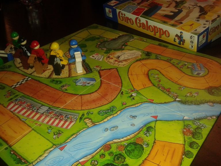 Découvert un peu par hasard en cherchant un jeu de société en rapport avec les chevaux, Giro Galoppo peut se pratiquer avec les enfants, sans trouver cela ennuyeux : j’adore ce jeu !