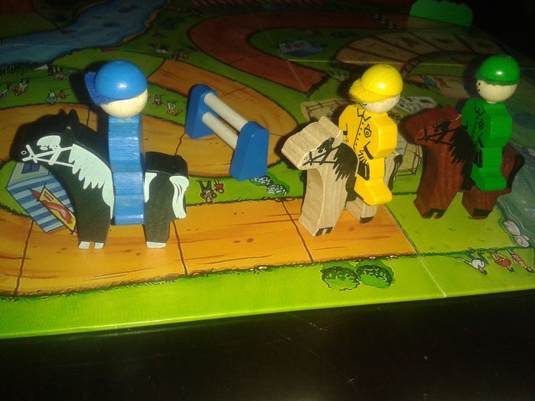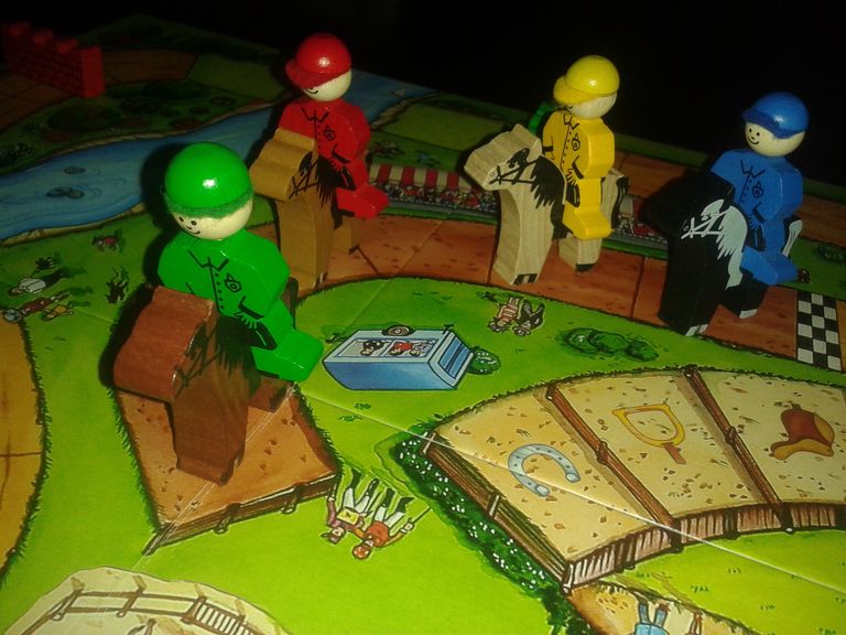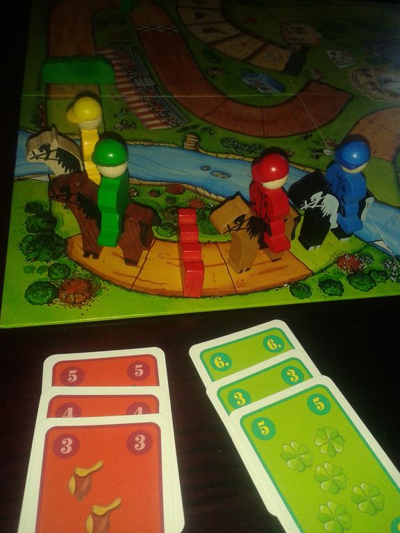 Chaque joueur choisit un cheval et son cavalier, et prend 6 cartes déplacement numérotées de 1 à 6 (chacun part donc avec les mêmes cartes).