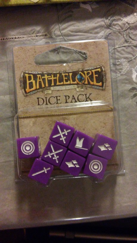 Vous l’aurez compris, BattleLore est avant tout un jeu d’affrontement et donc la phase de combat est vraiment le cœur de son mécanisme. Celle-ci repose sur des jets de dés. Sans entrer dans les détails, sachez que suivant le type d’unité que vous activez (cavalier, soldat, archer, etc.), vous lancerez un certain nombre de dés. Ces derniers contiennent des symboles qui :