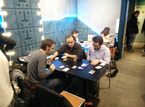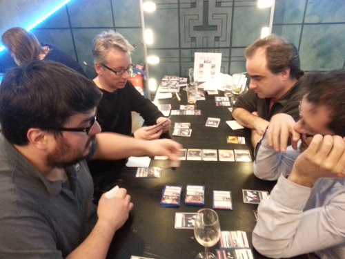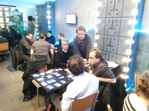 Le bilan est très positif, j’ai eu des joueurs -et des joueuses!- très différents, ce qui m’a permis de vérifier le gameplay avec des joueurs novices ou des joueurs expérimentés. Au total j’ai présenté Spy Wars à une quinzaine de joueurs que je ne connaissais pas, ce qui m’a permis d’avoir un avis objectif, des critiques constructives et des idées que je n’avais pas eues avant. Merci en tout cas au Dernier Bar pour la super organisation et l’ambiance ludique et conviviale.