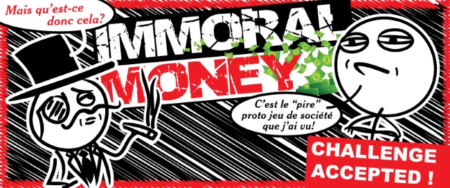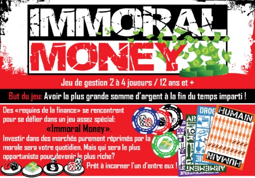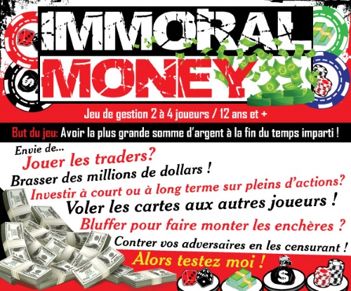 Je représente le prototype jeu de société « Immoral Money »
