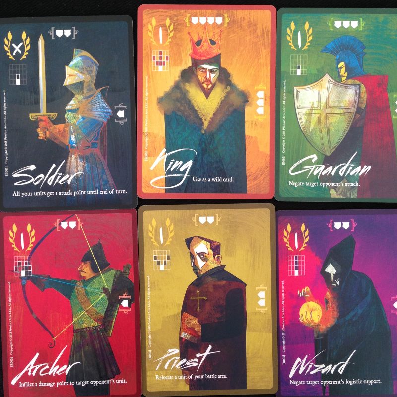 Car elle offre un pouvoir instantané. Comme un éphémère à Magic ou ce type de jeu. Les pouvoirs sont classiques : les archers infligent un de dommage à une carte adverse, le gardien annule un attaque, le magicien annule un support qui vient d’être jouer par votre adversaire… le roi, lui, peut avoir tous les rôles, vous choisissez au moment de le jouer.