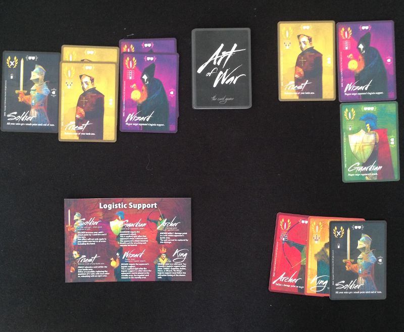 Art Of War vous offre un affrontement direct avec votre adversaire. Chacun possède un deck de cartes composé de chevaliers, gardiens, magiciens, prêtres, archers et d’un roi. Les cartes comportent une puissance d’attaque, un certain nombre de boucliers de défense, un rayonnement d’action et un pouvoir. Il existe plusieurs façons de remporter la victoire : vaincre le roi adverse, avoir un royaume plus important que l’adversaire lorsque les decks sont épuisés, ou avoir une majorité instantanée sur 4 types de cartes différentes dans votre royaume. Mais comment procédez-vous ?