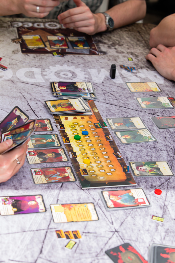– Steam Dreams : un jeu de gestion dans un univers SteamPunk, fait à 4 mains avec Florian Sirieix, vous allez gérer des machines cassées à réparer, à combiner ou à détruire pour les pièces détachées. Points forts détectés : un positionnement d’ouvrier pour effectuer des actions jumelées et prochain jeu dans la gamme d’Abyss suggérant un univers fort et développé.