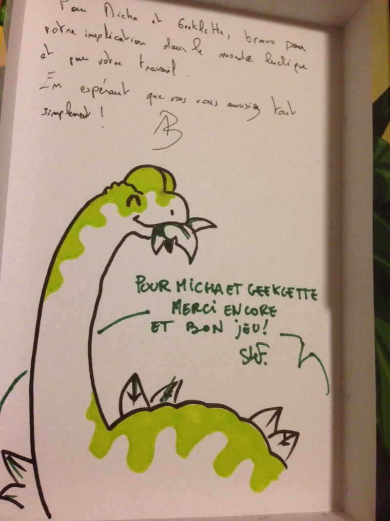 - Dino Twist : je vous en parlais il y a quelques semaines, le jeu est bel et bien sorti pour le salon. L’édition est soignée et les dédicaces ont fait l’unanimité !!