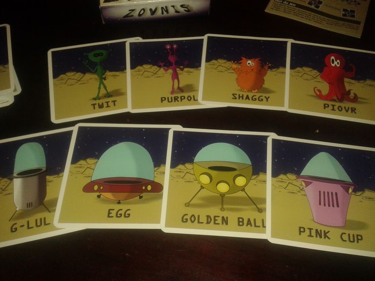 Les cartes du jeu représentent 1 des 4 vaisseaux armé ou non avec un des 4 extra terrestres à bord, ou une météorite servant de défense.