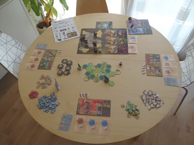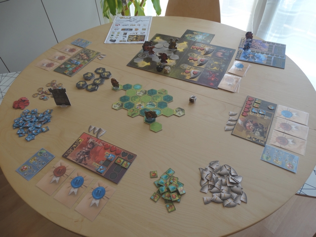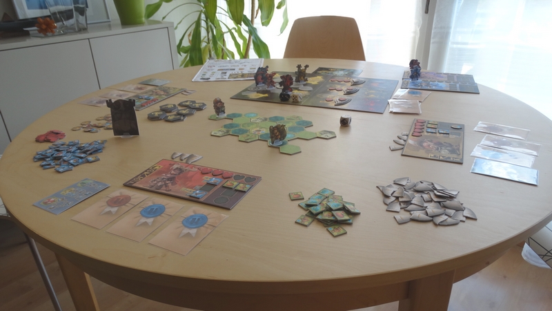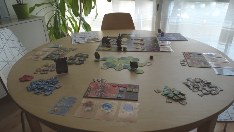 Je ne l’ai pas encore évoqué, mais comme vous avez pu le voir sur les photos, le jeu est superbement illustré par la talentueux Mathieu Leyssenne. Attention, il ne s’agissait que d’un proto, mais le matériel y est abondant, agréable et vraiment très beau – l’immersion est donc facilitée.