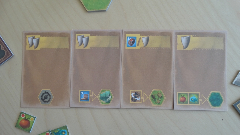 - Les tuiles « Ressources » : vous gagnez la ressource correspondante (fruit, poisson ou champignon) ;