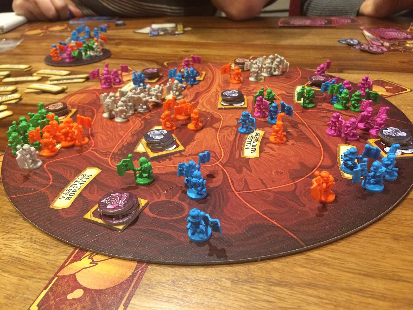 Mission Planète Rouge, j’ai trouvé trop chaotique le comptage de points. Pourtant, on a bien rigolé pendant le cours de la partie. Dans le même genre de jeux, j’ai préféré Vikings On Board, qui parait plus épuré.