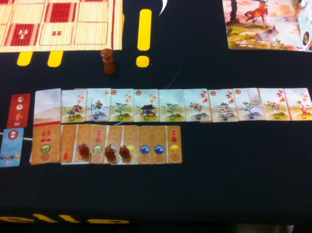 Kanagawa (2 à 4 joueurs) Voici la nouvelle production du duo auteur d’Abyss que j’adore. Le jeu est servi par un superbe matériel et les magnifiques illustrations de Jade Mosh. Le joueur est un peintre novice disciple d’un grand maître au début du 19ème siècle. L’objectif est de réaliser la plus belle des estampes, la « beauté » étant ici définie par la réalisation d’objectifs divers (présence d’animaux, de bâtiments, de personnages…) qu’il faut être le premier à revendiquer pour marquer des points ou obtenir des bonus bien utiles. Mais pour pouvoir peindre il faudra équiper son atelier (chaque joueur démarre avec deux pinceaux et une seule couleur à sa disposition) et là c’est l’autre partie des cartes qui est utilisée. Ainsi, lorsque l’on acquiert des cartes il faut choisir entre équiper son atelier ou étendre l’estampe si du moins l’atelier le permet. L’acquisition des cartes est elle-même un premier dilemme, la gourmandise risquant de nous voir passer sous le nez la ou les cartes convoitées. Celui qui peindra le 12ème pan de son estampe mettra un terme à la partie. Il sera temps de compter laquelle est la plus belle. Un jeu poétique et très agréable à jouer.