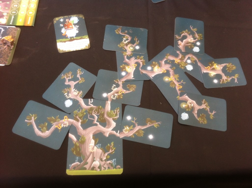 Kodama (2 à 5 joueurs) encore un jeu très poétique servi par des illustration magnifiques où chacun va devoir aider son arbre à pousser pour qu’il se rapproche le plus possible des objectifs permettant de satisfaire à la fin de chaque saison au bien être de Kodama qui nous accordera des points en échange.