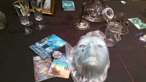 Après s’être couchées à 3h du matin, on a commencé la journée du vendredi avec la murder party (ambiance mysterium / avec de nouvelles cartes à venir) chez Libellud. On ne peut pas trop en parler mais c’est un jeu de rôle dans lequel parmi les joueurs il y aura un meurtrier qu’on devra découvrir à l’issu d’une heure d’enquête et de discussion. Première fois que je me retrouve dans un jeu de rôle et je dois admettre que je ne suis pas rentrée dans le sujet, car je n’étais pas à l’aise. Je connaissais peu les gens avec nous. Par contre, hormis ce fait, l’enquête était vraiment sympathique et l’observation des autres joueurs qui étaient à fond m’en a mis plein les yeux. Le décor était splendide aussi ! Et puis on est reparti avec quelques goodies que ma moitié saura apprécier !!! 😀
