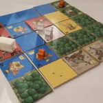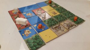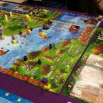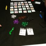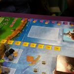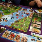 Dernier jeu de la journée c’est l’extension de Kingdomino, qui s’appelle QueenDomino (hihi) !! Je connais peu ce jeu et ça m’a donné envie d’y rejouer donc c’est bon signe. Bruno Cathala nous a expliqué les règles en deux temps trois mouvements , comme d’habitude et la partie a démarré. On peut maintenant recevoir des tuiles permettant de construire des bâtiments qui nous donneront des PV supplémentaires grâce à un système de tour ou de chevaliers. Il y a bien entendu une reine (pour avoir gratuitement des bâtiments) et un dragon (pour détruire un bâtiment disponible) Un jeu que je vais m’empresser de sortir plus souvent à la maison pour approfondir ma stratégie !!! 😀