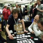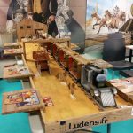 MON GROS COUP DE COEUR DE LA JOURNEE c’est STEAMERS !!!! A paraître chez Bombyx d’ici fin d’année, sans photo ! Tric Trac en parlait l’an dernier (d’ailleurs je ne peux pas mettre de photo mais là bas il y en a une). Florian (co auteur avec Bruno Cathala) nous a fait faire une partie et je dois dire que les illustrations sont magnifiques et la mécanique bien huilée, indispensable pour un jeu steam onirique 🙂 On va devoir récupérer des machines cassées, les réparer, et les associer dans notre atelier. Une magnifique idée déjà (parfois bien exploitée dans d’autres jeux mais ici fortement bien exploitée). A notre tour de jeu, on récupère les ressources de notre atelier, on achète une machine cassée, on fait 2 actions (réparer, démonter, associer, recruter…) et on regarde si nos projets répondent à des commandes. Le premier à répondre à une commande gagne tous les points, le second tous moins 1, le troisième tous moins 2 … etc… Du coup la course aux projets est lancée. L’ordre du tour est donné par l’achat des machines cassées, plus vous payez plus vous êtes premier à jouer 🙂 J’ai particulièrement apprécié le recrutement ; pouvoir et illustrations données… Bref, un must have !!!!!!!!!!!!!!!!!!!!!!!!