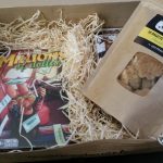 - le prix est de 35 euros (ou 32 si vous êtes abonnés à l’année via mondial relay). Les deux jeux de cette boîte font 12,90 et 10,50 euros (prix Philibert) (soit un total de 23,40 euros). Les gourmandises artisanales (biscuits et brisures de sapin) ainsi que les frais de port devraient donc couvrir près de 12 euros. On en a donc pour notre argent.