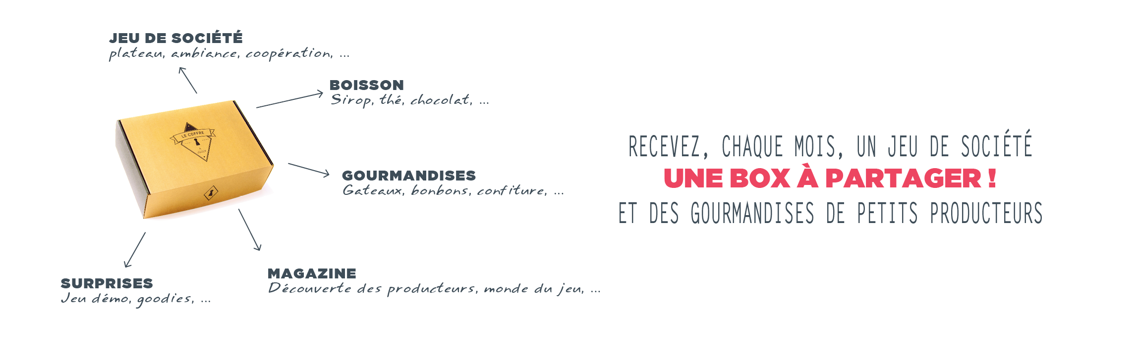 Le coffre à jouer propose depuis quelques mois déjà plusieurs box mensuelles pour tout âge et depuis fin 2016 une box trimestrielle pour les experts. Ces box contiennent principalement 1 à 3 jeux de société ainsi que des gourmandises à partager entre joueurs. Elles coûtent de 32 à 35 € par mois selon votre durée d’abonnement. Quant à la box experts, trimestrielle, elle vous en coûtera 65 €.
