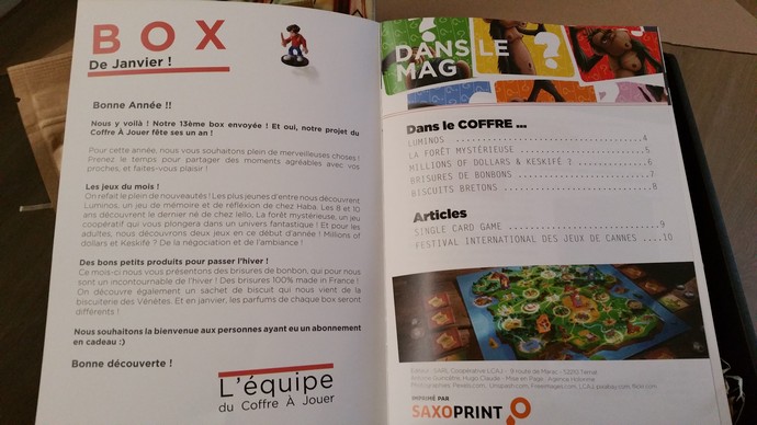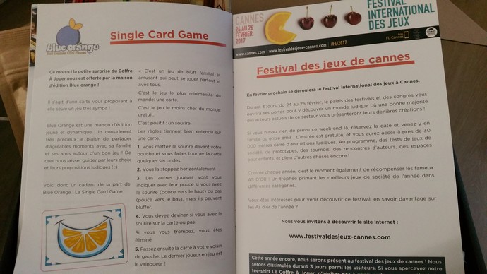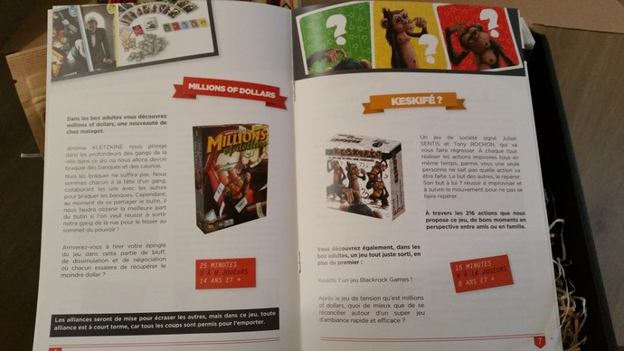 Ces jeux ont non seulement leur petite règle respective (logique) mais un livret vient accompagner la box pour présenter les jeux de chaque box du mois en cours, les produits artisanaux ainsi que des sujets d’actualité (ici le festival de Cannes !!!).