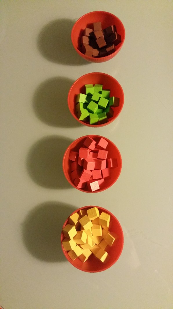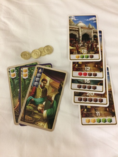 En début de partie les joueurs recoivent des épices jaunes (selon l’ordre du tour) et 2 cartes « gratuites » :