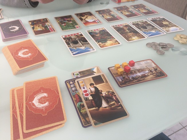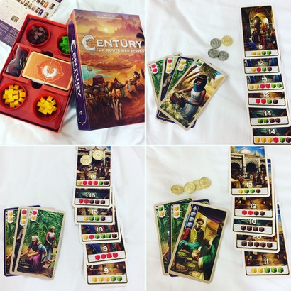 Deux jeux m’ont particulièrement marquée à Cannes, c’est Mafiozoo et Century : spice road. Je ne parlerai que de ce dernier (je me garde un autre article et d’autres parties pour Mafiozoo).