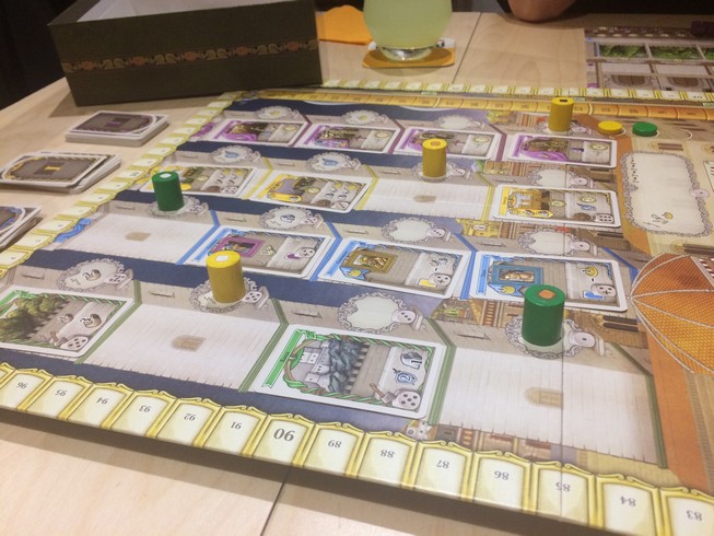 Un jeu de gestion pur et efficace, malgré le parti pris graphique complètement hideux. On ne trouve pas de défaut à ce jeu. On prend un malin plaisir à prendre les places des autres sur le plateau. Il y a des catégories de cartes à récupérer, et vous ne pouvez pas récupérer 2 cartes de la même catégorie dans un même round, ce qui vous pousse à faire des choix et des calculs selon les autres catégories, selon les adversaires, histoire de pas manquer LA carte nécessaire à votre stratégie. Un must have qui sort d’ici Mai chez Atalia. Il a fortement buzzé à Essen, et c’est amplement mérité.