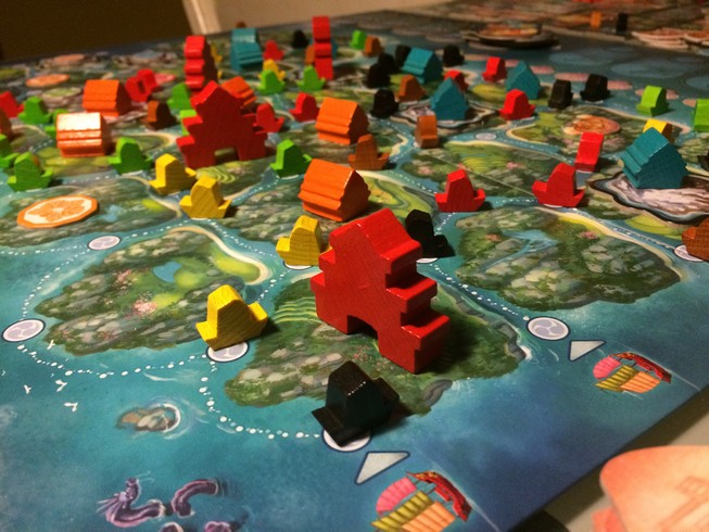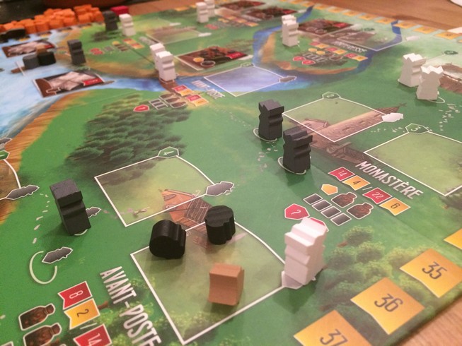 On a juste adoré ! Les places sont chères sur le plateau et malgré la plus grosse crasse qu’on m’ait faite en jeux (ça va te poursuivre Fanny), j’en redemande. Et les petits meeples plastiques à la place des cubes sont sympas et plus immersifs (pour un jeu où on parle plus mécanique que thème quand même)