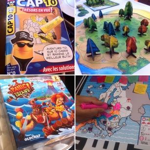 L’un des plus du jeu c’est qu’il y a plusieurs pièges disponibles. Il nous est donc possible de choisir l’une ou l’autre des îles sur laquelle nous allons jouer en combinant 3 paires de cartes pièges au choix, ce qui permet de renouveler les parties. Nous avions pour notre première expérience les pièges Mirage qui oblige à échanger les places des deux cartes retournées, Nid de Guêpe où tout le monde doit poser sa main sur la carte avant de poursuivre et enfin Tornade (faire un tour sur soi-même) et je peux vous dire que pour les repères sur les cartes que je crois avoir mémorisée bah… c’est pas bon ha ha !