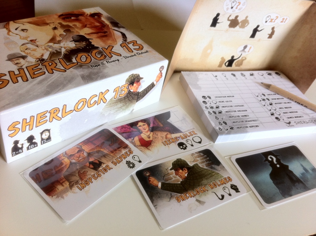 Sherlock 13 tout d’abord, un jeu pour 2 à 5 joueurs de Hope S. Hwang, superbement illustré par Vincent Dutrait, implanté en France par Letheia.
