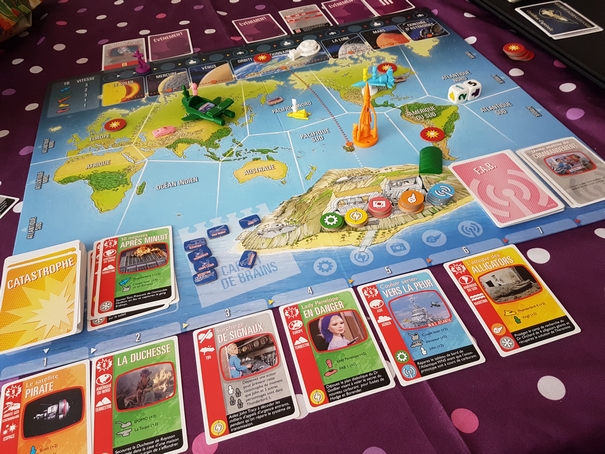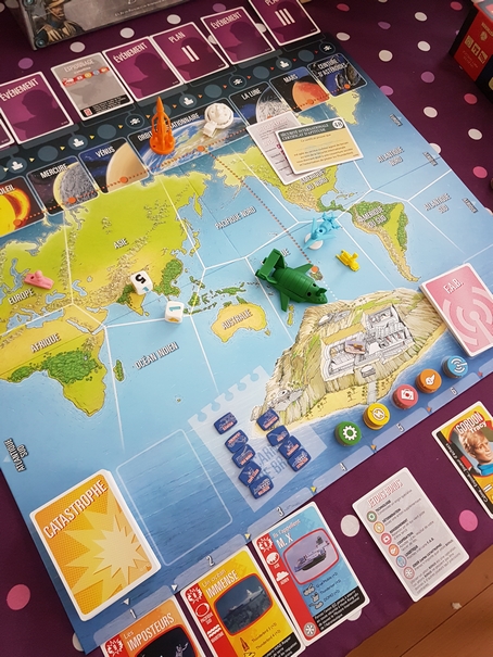 Le tour de jeu est assez simple. Le joueur va pouvoir réaliser 3 actions parmi 4. Ensuite, il piochera une carte Catastrophe.