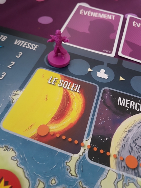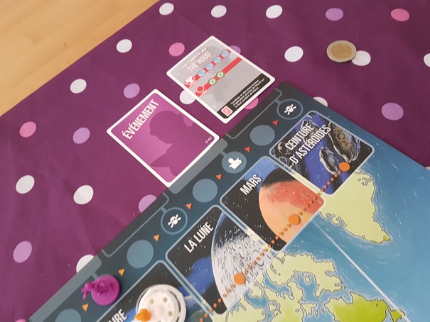 En début de partie, au-dessus du plateau de jeu, on place 4 cartes « Evènement » et 3 cartes « Plan ».