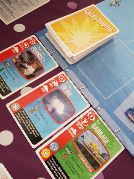 - Une carte « Catastrophe » arrive sur l’emplacement situé tout en bas à droite du plateau,