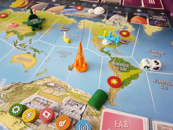- Utiliser des jetons Bonus pour relancer un dé, construire des Engins Spécialisés, jouer une action de plus, ajouter +2 au résultat des dés, etc.