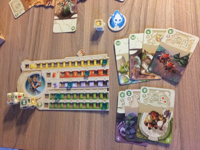 On a découvert Dice Forge aussi grâce à Det.Didine (de l’association L’ouvre Boite de Montpellier) qui habite maintenant à Toulouse. J’ai peur de jouer un peu trop la même stratégie à chaque partie du coup la rejouabilité n’est pas à la hauteur pour moi mais ma moitié a beaucoup aimé, elle voudrait y rejouer. Et il faut admettre que les illustrations sont juste magnifiques. L’édition est fortement bien étudiée, les dés sont très faciles à manier pour changer les faces, l’idée est carrément original, le thermoformage est opérationnel, le rangement y est facile. Bref, pour les familles qui veulent mettre un pied dans la gestion c’est franchement réussi.