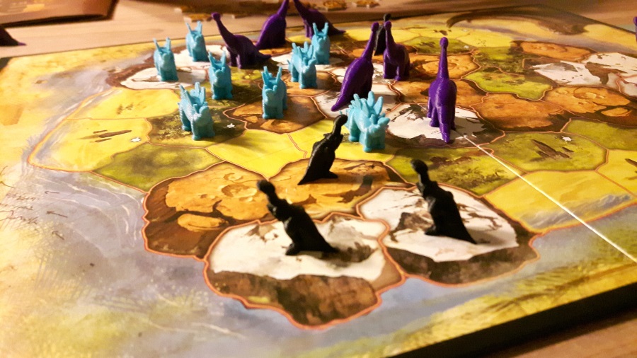 Evo…. ah Evo… quand je pense à ce jeu je suis nostalgique de nos parties à Saint Germain en Laye. Nostalgique de Micha et Ian aussi… Le jeu est moche qu’il en peut plus mais je suis une grande fan de la mécanique : enchère, déplacement et placement, avec du combat car le terrain ne peut pas accueillir tout le monde. Ce jeu est complet et fait partie de mon top 3 depuis des années (enfin l’année où Ian me l’a fait découvrir).