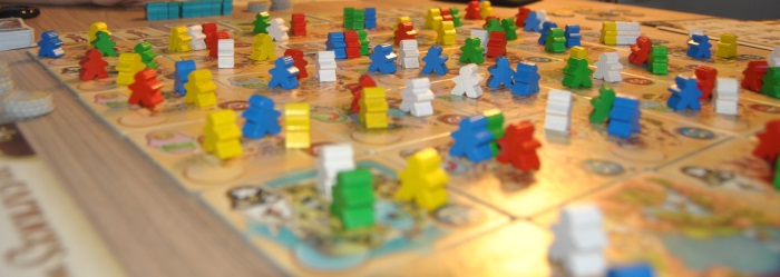 Santorino : idéal pour 2 joueurs, intéressant à 3 avec le dilemme de « j’essaie de bloquer celui qui prends l’avantage au risque que le 3ème larron en profite ou je fais la pari qu’il va s’en occuper ? ». Peu d’intérêt à 4 joueurs, simple réponse à une contrainte éditoriale pour moi.