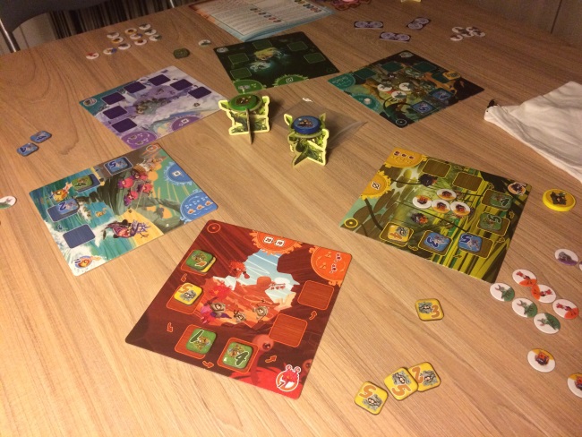 Ma belle fille a beaucoup aimé, elle nous a mis une raclée avec 24 points contre 14 et 9. La boite de jeu nous a habitué à des jeux un peu gamer mais là ce n’est pas le cas du tout et pourtant l’édition est propre (malgré quelques pépins quand même dans la règle). Le jeu est très beau et plait aux plus petits. L’avantage pour les gamers c’est que ça fait plaisir à la famille et ça dure moins de 15 minutes. Devant l’enthousiasme de ma belle fille de 8 ans, on ne peut que s’incliner car elle est plutôt difficile. Bravo donc!