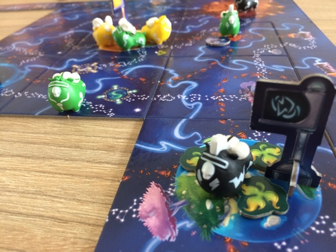 Ne vous Ă©tonnez pas si vous tombez dans les vapes dĂšs l’ouverture du jeu, il PUE. On a cru gerber Ă chaque fois qu’on s’approchait des tuiles. Bref, en plus d’ĂȘtre beau (heureusement vu l’odeur) le jeu est hyper plaisant Ă jouer, et facile Ă expliquer. Vous devez amener vos moutons de l’autre cĂŽtĂ© de la galaxie en passant par des chemins semĂ©s dâembĂ»ches (les autres moutons, les sabotages, les planĂštes). On a pris le jeu avec sĂ©rieux et fun. C’est cela sa force. Il y a un poil de stratĂ©gie pour les gamers et le fun tant attendu par la famille. Je pense qu’on va le sortir souvent celui-ci.