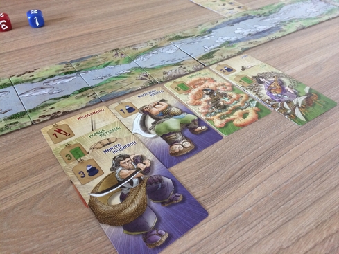 Il fait malheureusement doublon avec Kingdomino mais il y a un petit plus que j’adore c’est l’idĂ©e de gestion de ressources (non sans rappeler Keyflower (que j’adore), ce dernier Ă©tant plus lourd quand mĂȘme). Dans Honshu, vous prenez des cartes terrains (selon ce que vous laissent les autres), vous les placez sur votre terrain selon des rĂšgles de placement. Vous avez des terrains qui produisent et des terrains qui attendent le produit fini. En fin de partie, vos ressources pourront ĂȘtre transfĂ©rĂ©es dans les manufactures pour vous rapporter des points de victoire supplĂ©mentaires (sauf si vous les avez utilisĂ©es pour choisir vos terrains avant les autres).  En tous les cas, vu le prix, Honshu respecte ses promesses.