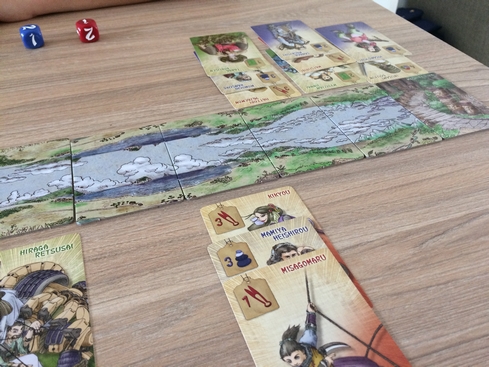 Il fait malheureusement doublon avec Kingdomino mais il y a un petit plus que j’adore c’est l’idĂ©e de gestion de ressources (non sans rappeler Keyflower (que j’adore), ce dernier Ă©tant plus lourd quand mĂȘme). Dans Honshu, vous prenez des cartes terrains (selon ce que vous laissent les autres), vous les placez sur votre terrain selon des rĂšgles de placement. Vous avez des terrains qui produisent et des terrains qui attendent le produit fini. En fin de partie, vos ressources pourront ĂȘtre transfĂ©rĂ©es dans les manufactures pour vous rapporter des points de victoire supplĂ©mentaires (sauf si vous les avez utilisĂ©es pour choisir vos terrains avant les autres). En tous les cas, vu le prix, Honshu respecte ses promesses.