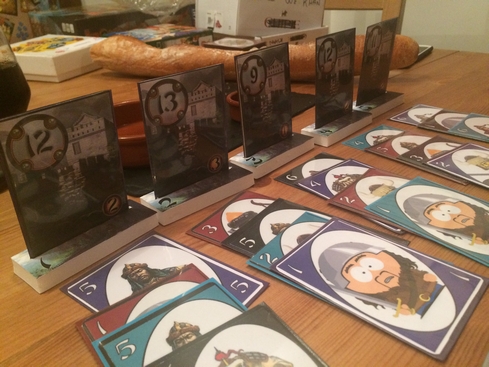 Grosse claque sur ce jeu dont le matos jouera clairement sur l’immersion. Vous ĂȘtes les mongoles devant le mur de Chine, et il va falloir dĂ©foncer les parties du mur pour sortir vainqueur de quelques points. Sauf que celui qui remporte les points est celui qui aura mis la plus petite carte (si le mur est dĂ©foncĂ©, il gagnera des points, si non il en perdra !!!). Simple, efficace, tendu, et les oracles nous aident Ă pourrir les attaques hahahaha J’adore !