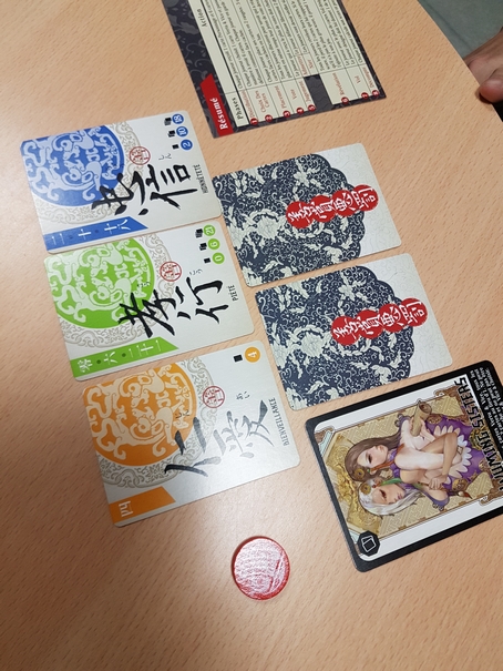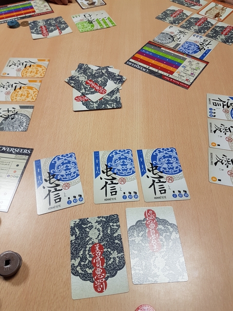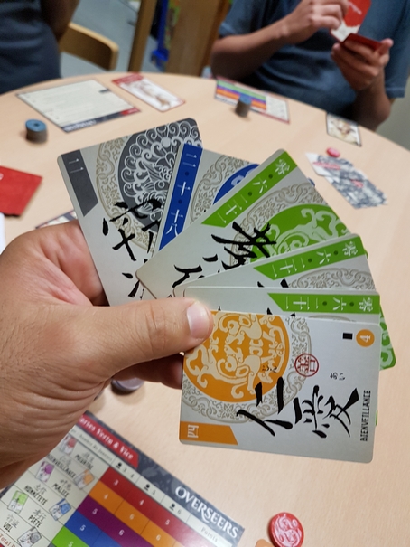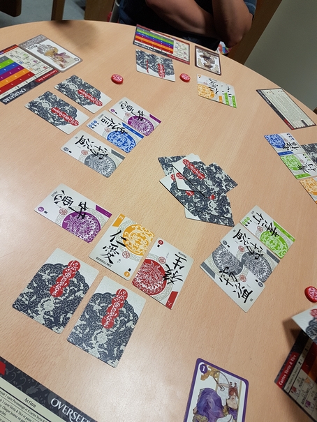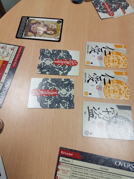 Tout d’abord, les joueurs procèdent à un draft de leurs cartes (on garde une carte face cachée et on passe le reste de son paquet à son voisin). On continue jusqu’à ce que chacun ait récupéré 6 cartes. Ensuite, chacun en défausse 1 de son choix face cachée.