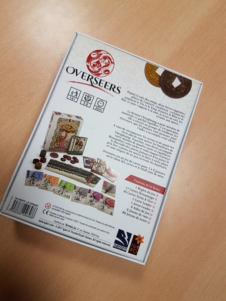 Merci à Igari d’avoir eu le bon goût de nous proposer la VF d’Overseers. Il apparaît comme une bouffée d’air frais dans le monde des jeux de bluff. En effet, depuis l’excellent Skull and Roses, je n’avais plus accroché à aucun jeu de ce type. Celui-ci est à la fois simple et subtil. De plus, les pouvoirs des personnages assurent un bon renouvellement des parties. A cela s’ajoute un univers enchanteur (auquel hélas certains resteront hermétiques) et superbement illustré qui ajoute au plaisir de jeu. Si vous cherchez un jeu de bluff beau et original, vous pouvez enfiler vos combinaisons d’Overseers sans souci ! 😉