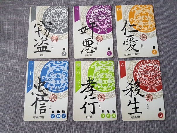 - Le rappel du score de chaque type de cartes en bas à droite de chacune d’elle.