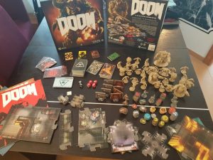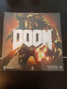 Doom est une légende dans le domaine du jeu vidéo. En effet, c’est le 2ème FPS (First Person Shooter) de l’histoire (après Wolfenstein 3D). Il s’agit d’un type de jeu « à la 1ère personne » où le joueur tire sur tout ce qui bouge. Si ce système est extrêmement répandu de nos jours, à sa sortie -en décembre 1993-, ce fût une révolution ! Lorsque Doom 3 sort plus de 10 ans après, il fait l’objet d’une très bonne adaptation en jeu de plateau par FFG. Aujourd’hui, à l’occasion de la sortie en jeu vidéo de nouveau Doom (Le « 4 » mais il ne faut pas dire « 4 », il parait), Edge France nous propose en VF la refonte du jeu de plateau originel… Pour le meilleur ou pour un vrai massacre ? Réponse dans ce test !